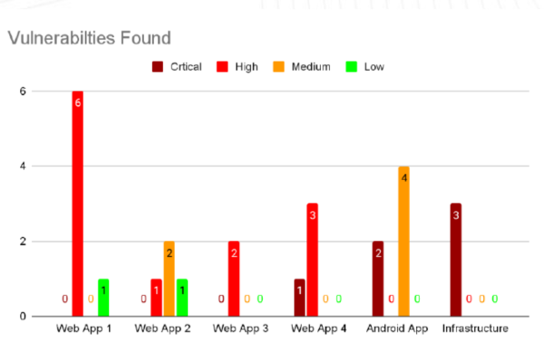 Complex Ecosystem: The client’s digital ecosystem included multiple interconnected web applications, an Android app, and cloud infrastructure. Each component required both individual and integrated testing to identify vulnerabilities while minimizing disruption to ongoing operations.